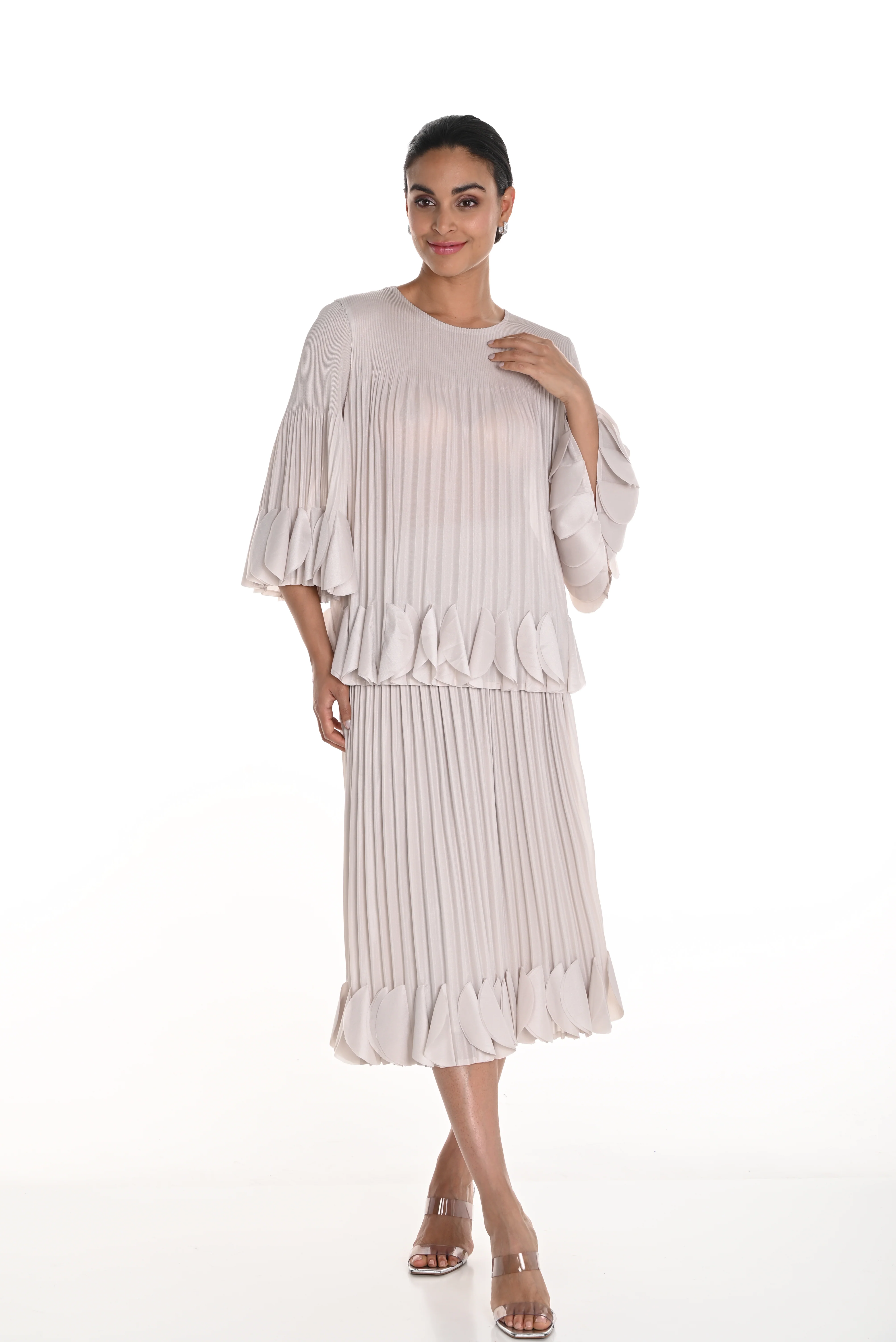 Elegant Design: The skirt features a flowing, pleated silhouette that adds movement and grace to your outfit. The unique scalloped hemline enhances its feminine charm.