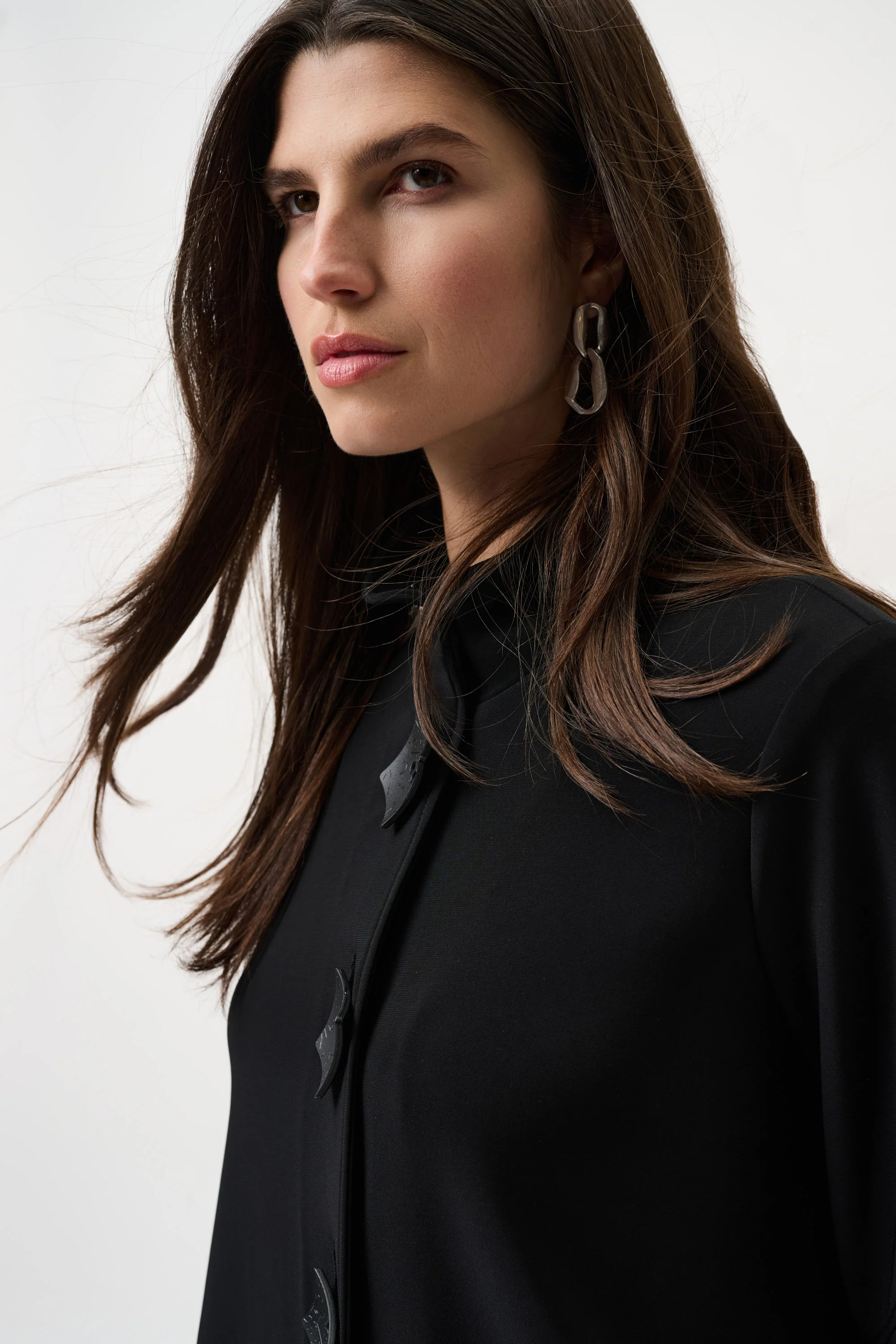 Make a sophisticated statement by donning this fan-favorite jacket in a trapeze silhouette with a stand collar and bold buttons. Everything about this 70 's-inspired trapeze silhouette jacket spells confidence and excellence. From its beautifully cuffed three-quarter sleeves to its back panels, this original jacket is sure to make you feel like the quintessential modern woman.