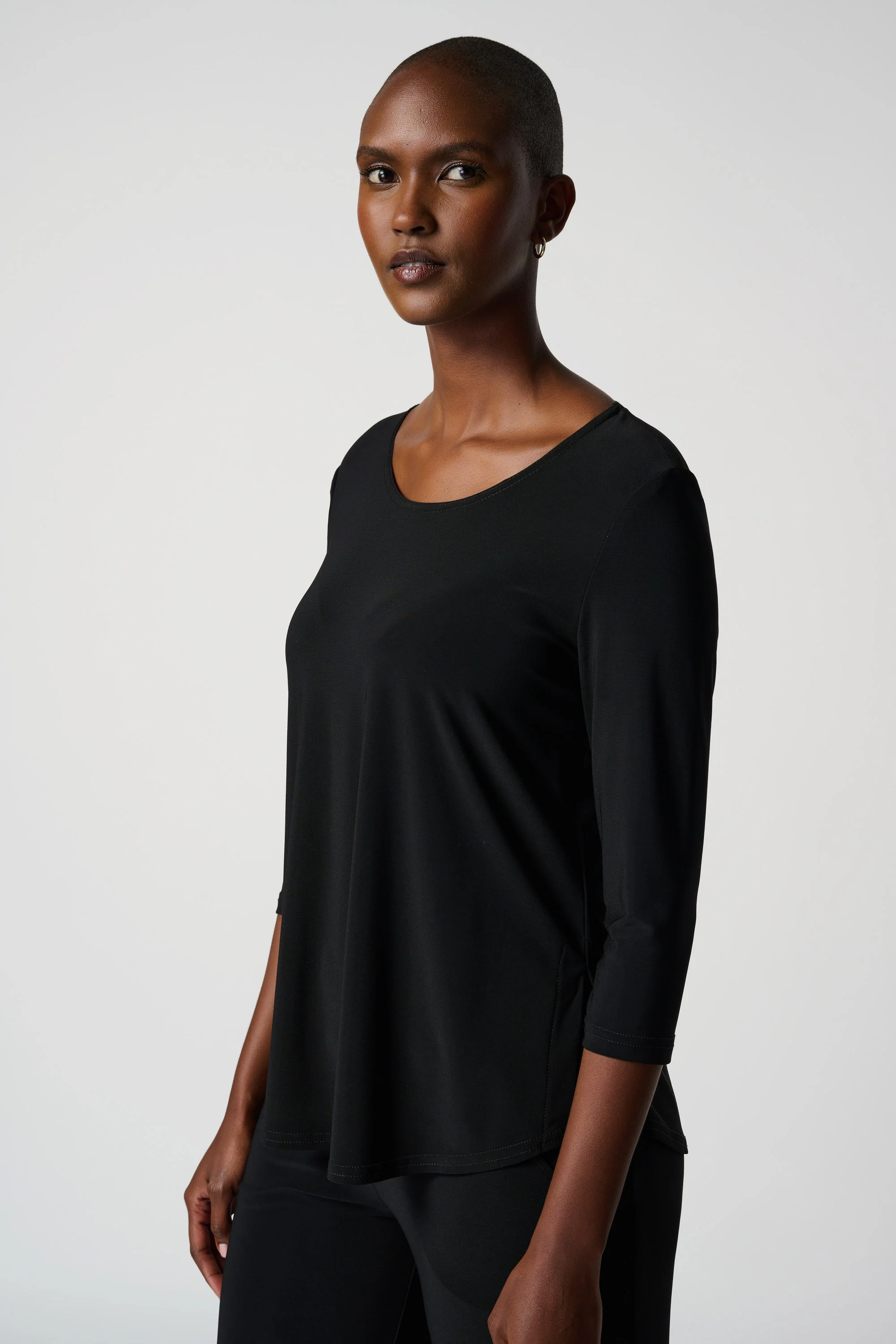 Elevate your everyday style with this silky knit boxy top, featuring an elegant scoop neck and three-quarter sleeves. This top can be mixed and matched with your favourite pieces creating a timeless and effortless look.