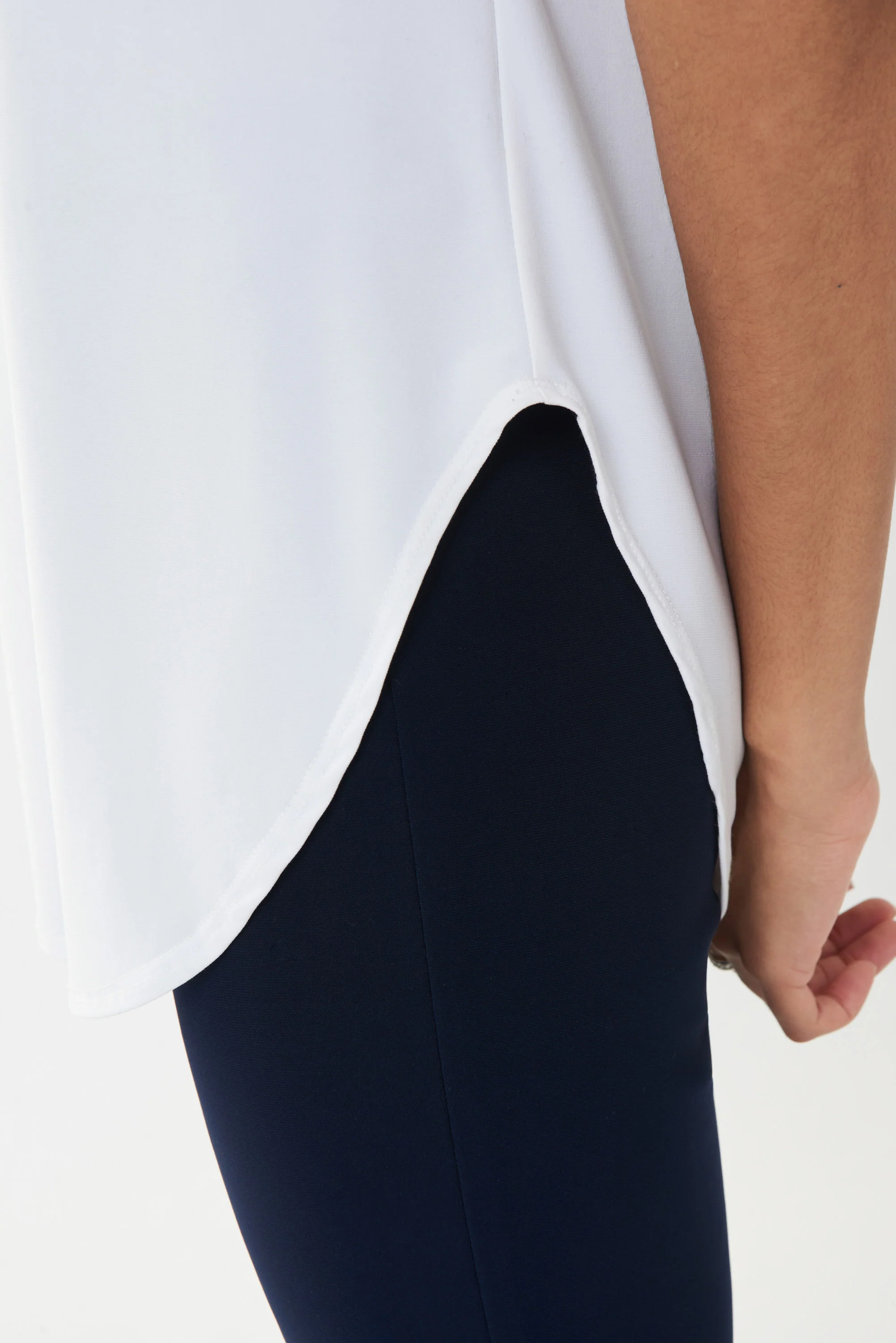 This silky knit short-sleeved t-shirt just reached a whole other level with the addition of a shirttail hemline, creating a look that's flowy and flattering for all shapes. Also featuring a lovely scoop neckline and fitted silhouette, this tee will quickly become one of your favourites.